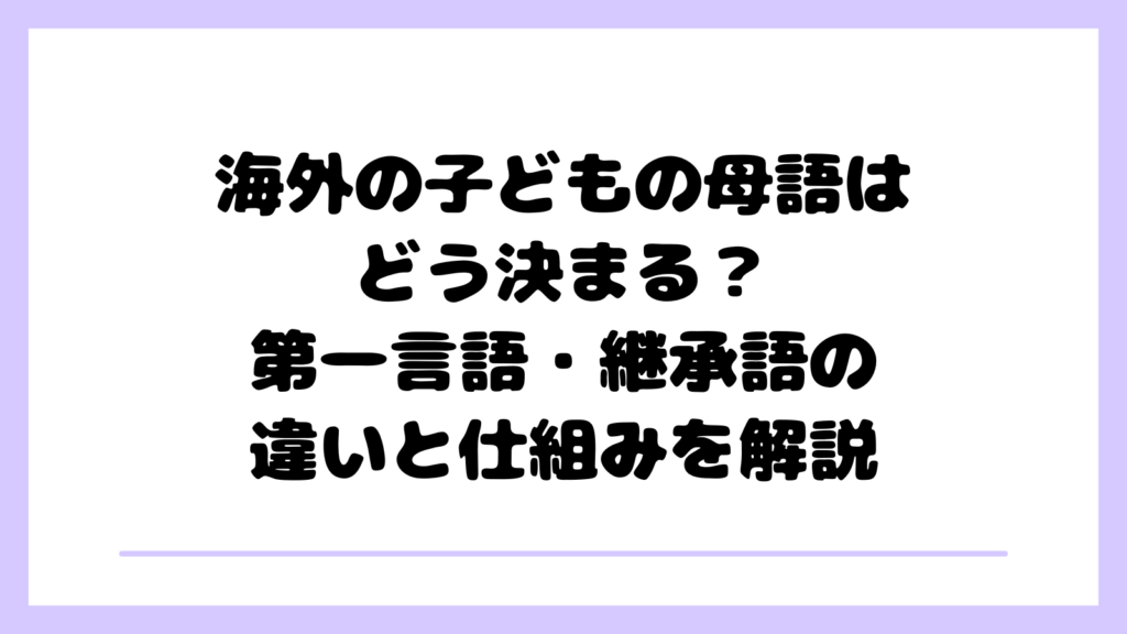 海外の子どもの母語はどう決まる?第一言語・継承語の違いと仕組みを解説