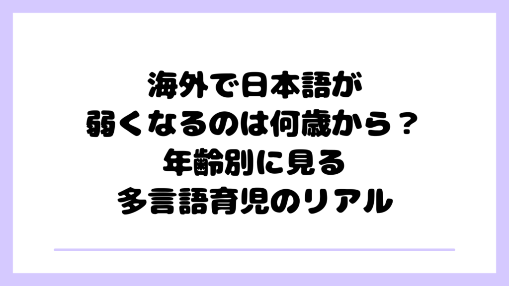 海外で子育てをしていると、 「子どもの日本語はこのままで大丈夫なのか」 と不安に感じることはないでしょうか。 特に、現地の言語が強くなるにつれて、日本語を使う機会はどうしても限られていきます。 わが家でも、実際に2歳の頃に日本語を話さなくなり... -