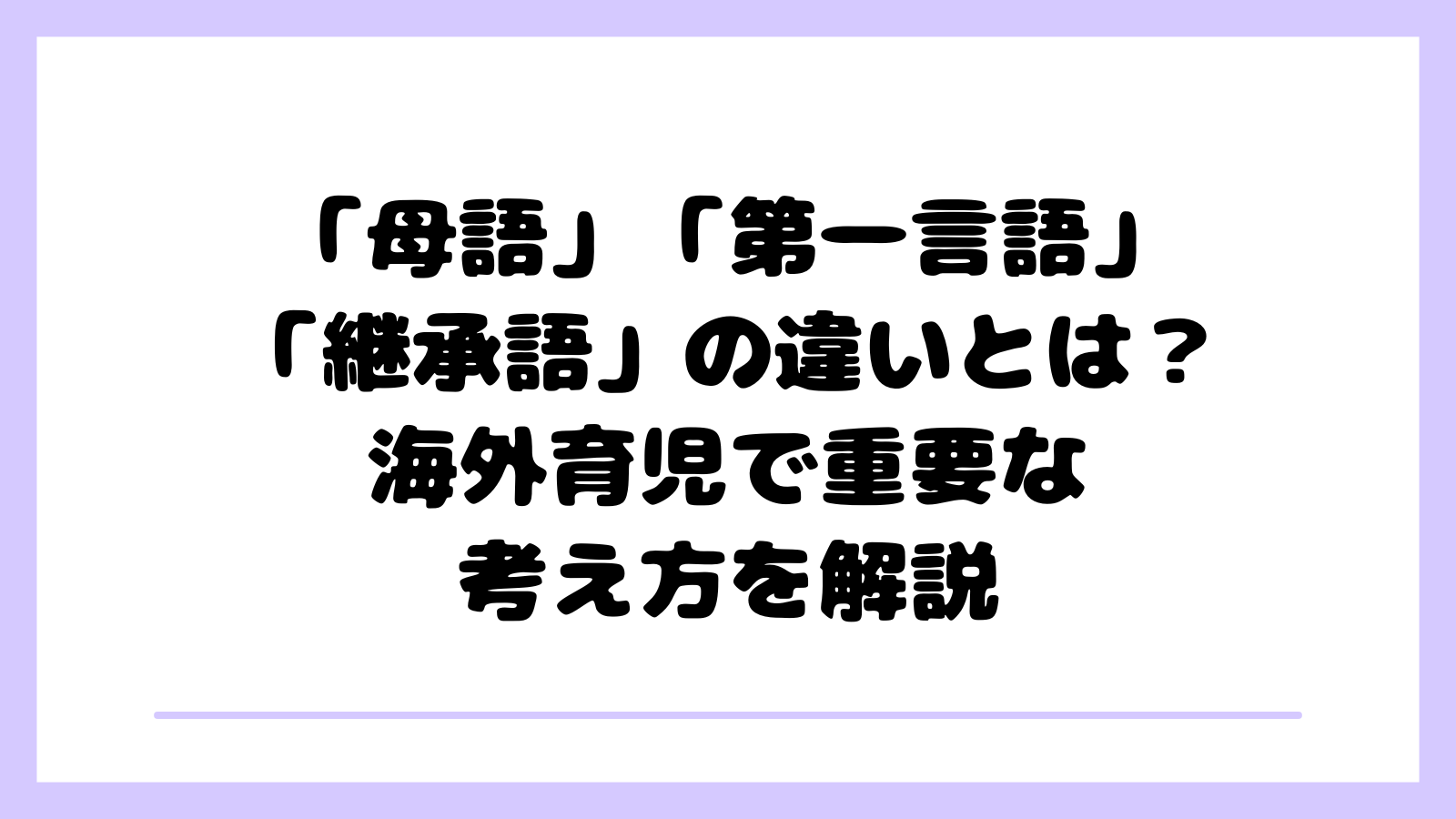 日本で生まれ育った私たち日本人は少しわかりずらいですが、多民族国家や、公用語が複数ある国、またわが家のように子どもが小さい時に移住をしていたり、両親の話す言語が異なっている環境で育つ子どもの場合、母語とは多面的な要素をもちます。